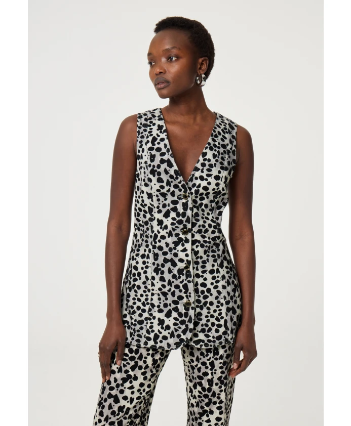 Этот джинсовый жилет с принтом в черно-белых тонах изготовлен из 100% хлопка и имеет застежку на пуговицах по всей длине по центру. Он универсален как в сочетании с любимыми джинсами, так и с кроссовками, и добавит непринужденности вашему летнему образу.