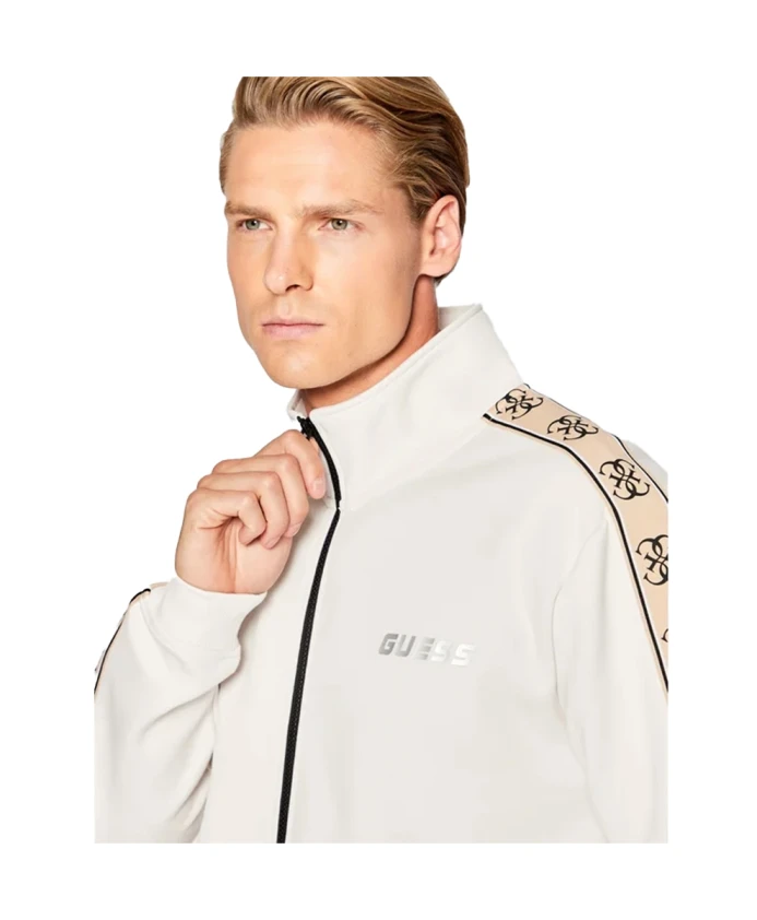 Оставайтесь стильными и чувствуйте себя комфортно в этой мужской толстовке на молнии от Guess, изготовленной из синтетической ткани. Идеально подходит для создания повседневного, но модного образа.