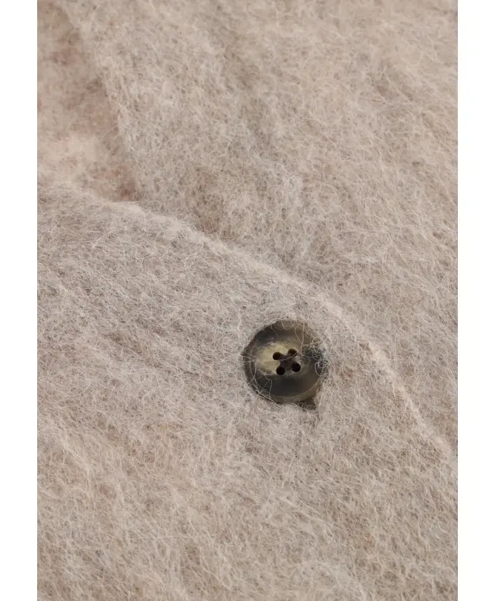 Кардиган The Second Female Karla - это мягкий, пушистый кардиган из шерсти альпаки, созданный для многослойной одежды в прохладную погоду. V-образный вырез и застежка на пуговицах позволяют легко сочетать его с одеждой для неспешных прогулок, уютных дней дома или с джинсами и юбками. Ключевые особенности: Бежевый | Шерсть альпаки | Мягкий на ощупь | Теплый и утепляющий | Пушистая текстура | Застежка на пуговицах | Длинные рукава | V-образный вырез | Слегка свободный силуэт | Застежка на пуговицах | Размеры и посадка: Обычный, слегка свободный крой | Состав ткани и уход: 74% альпака | 24% полиамид | 2% эластан | Только ручная стирка; не отбеливать; не сушить в сушильной машине; сушить в горизонтальном положении в тени; гладить при умеренной температуре; профессиональная химчистка (все растворители, кроме трихлорэтилена); стирать наизнанку с вещами аналогичного цвета.