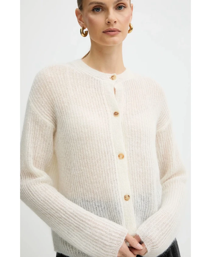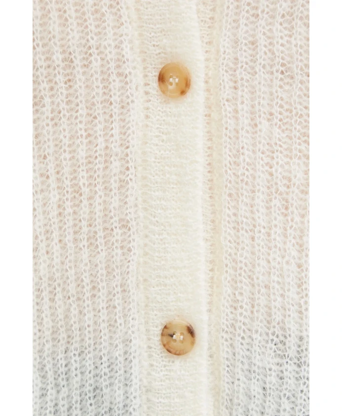 Кардиган Max Mara Meandro сочетает в себе элегантный, обволакивающий силуэт и мягкую трикотажную ткань, что делает его идеальным элементом многослойного образа как для повседневной носки, так и для более нарядных случаев. Ключевые особенности: Бежевый | Слоновая кость | Полиамид | Открытый перед (без пуговиц) | Воротник-шаль | Обволакивающий силуэт | Длинные рукава | Размеры и посадка: Стандартный крой | Материал и уход: 50% полиамид | 46% мохер (коза породы Hircus, Южная Африка) | 4% шерсть (Ovis Aries) | Ручная стирка в холодной воде (макс. 40°C); не отбеливать; не сушить в сушильной машине; сушить в горизонтальном положении в тени; гладить при низкой температуре; профессиональная химчистка (перхлорэтилен, деликатный режим); не стирать влажным способом; гладить с тканью между тканью и утюгом.