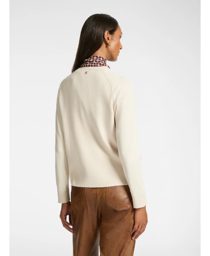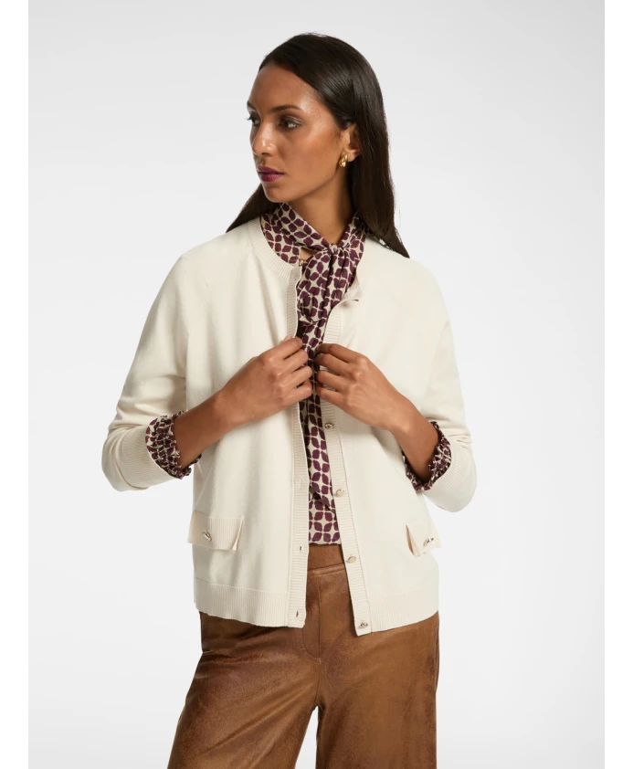 Кардиган Elena Miró Rebecca - короткий кардиган с круглым вырезом, сочетающий спортивный стиль с изысканными металлическими пуговицами с монограммой. Легкий и универсальный, он идеально подходит для многослойных образов как в повседневной, так и в более нарядной обстановке. Ключевые особенности: Белый | Вискоза | Застежка на пуговицы | Металлические пуговицы с монограммой | Короткий круглый вырез | Рукава реглан | Тонкая вязка с ребристой отделкой на спине, передних краях и планке с пуговицами | Детали с металлическими пуговицами с монограммой | Размеры и посадка: Короткая длина | Состав ткани и уход: 68% вискоза | 32% полиэстер | Ручная стирка; не сушить в сушильной машине; не отбеливать; сушить в горизонтальном положении; не подвергать химчистке; гладить при низкой температуре (110°C).