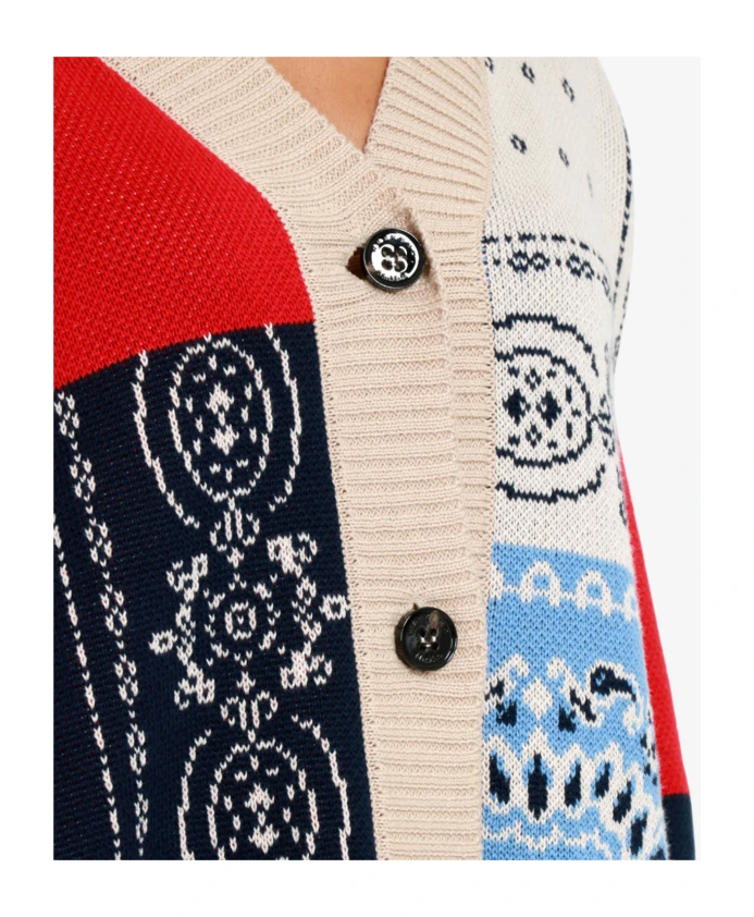 Кардиган Weekend Max Mara Jacquard сочетает в себе фактурный хлопковый трикотаж с эффектным жаккардовым узором по всей поверхности. Он создан для легкого многослойного образа, имеет V-образный вырез и классическую застежку на пуговицы спереди. Ключевые особенности: Разноцветный | Бежевый | Красный | Синий | Хлопок | Застежка на пуговицы спереди | V-образный вырез | Спущенные плечи с манжетами | Жаккардовый узор по всей поверхности | Фактурный трикотаж | Ребристая отделка | Прямой низ | Размеры и посадка: Обычный крой | Состав ткани и уход: 100% хлопок | Ручная стирка в холодной воде (макс. 40°C); не отбеливать; не сушить в сушильной машине; сушить в горизонтальном положении в тени; гладить при низкой температуре; профессиональная химчистка (перхлорэтилен, щадящий режим).