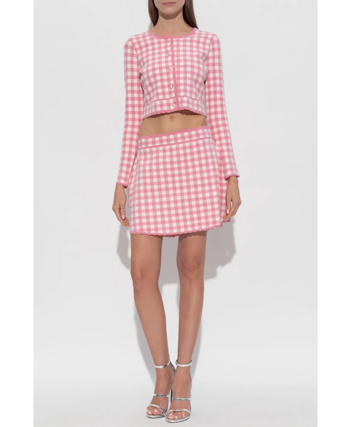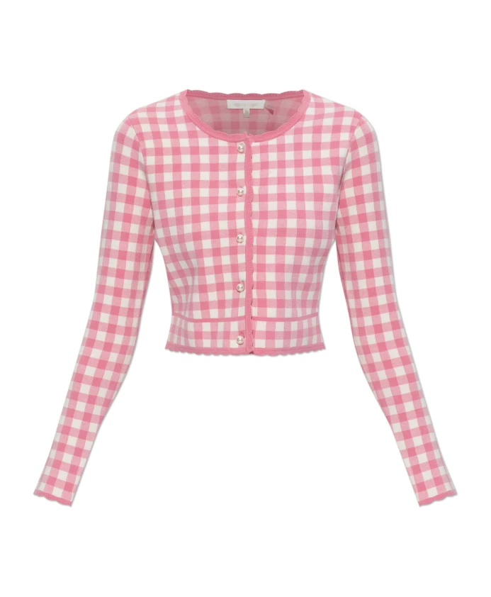 От LoveShackFancy: Кардиган Bridgette - это укороченный, приталенный кардиган, сочетающий в себе нежный клетчатый узор с фестончатой оборкой и жемчужными пуговицами для создания элегантного, женственного образа. Ключевые особенности: Розовый жемчуг | Вискоза | Эластичная ткань | Мягкая на ощупь | Застежка на пуговицы спереди | Клетчатый узор | Волнистая оборка на вырезе, манжетах и подоле | Укороченная талия | Длинные прямые рукава | Жемчужные пуговицы | Размеры и посадка: Рост модели: 176 см | Обхват груди модели: 85 см | Обхват талии модели: 60 см | Обхват бедер модели: 89 см | Модель носит размер: S | Приталенный | Укороченная талия | Состав и уход: Ручная стирка в холодной воде. Не отбеливать. Сушить в расправленном виде. Гладить при низкой температуре.
