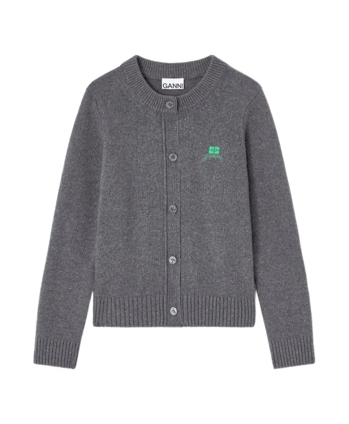 Кардиган Ganni из шерстяной смеси - это теплая вещь для многослойного образа, украшенная вышитым логотипом и застежкой на пуговицы. Идеально подходит для повседневных или элегантных повседневных нарядов, легко сочетается с джинсами или брюками. Ключевые особенности: Антрацитово-серый | Шерсть | Теплый | Застежка на пуговицы | Подходит для многослойного образа | Круглый вырез | Ребристые края | Вышитый логотип | Размер и посадка: Стандартный крой | Состав ткани и уход: 60% шерсть | 40% вискоза | Ручная стирка; не отбеливать; не сушить в сушильной машине; не гладить; профессиональная химчистка (все растворители, кроме трихлорэтилена); расправить и сушить в горизонтальном положении; использовать средство для стирки шерсти; не замачивать.