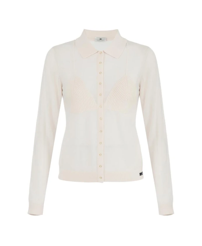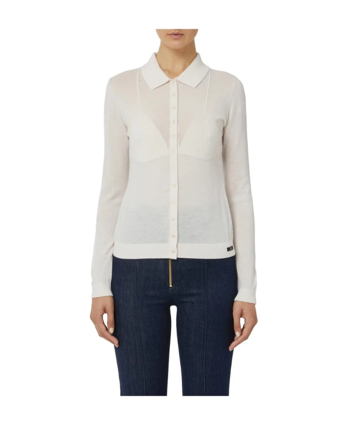 Кардиган Elisabetta Franchi из шерстяной смеси сочетает в себе облегающий, приталенный силуэт с ребристыми деталями, напоминающими нижнее белье, которые создают изысканные полупрозрачные контрасты. Он идеально подходит в качестве легкой вещи для многослойных образов, как элегантных, так и повседневных. Ключевые особенности: Белый | Молочный | Шерстяная смесь | Застежка на пуговицы | Логотип | Воротник рубашечного типа | Длинные рукава | Ребристые детали, создающие линию бюстгальтера | Легкий полупрозрачный контраст | Облегающий силуэт | Этикетка внизу | Размеры и посадка: Длина: 57 см для размера IT 40 | Модель: 177 см, размер IT 40 | Облегающий крой | Состав и уход: 77% шерсть | 19% полиэстер | 4% полиамид