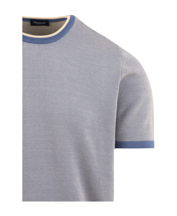 Мужская футболка DRUMOHR - Синяя - Пике с круглым вырезом - Цвет: Светло-голубой/Лунный. Советы по стилю: Футболка DRUMOHR идеально подходит для создания элегантного повседневного образа. Сочетайте ее с темно-синими джинсами и белыми кроссовками для расслабленного, но в то же время стильного вида. Светло-голубой оттенок подходит как для рабочего дня в офисе, так и для встречи с друзьями. Идеальная для активного и динамичного мужчины, эта футболка с короткими рукавами и круглым вырезом из пике - универсальная и удобная вещь для современного мужчины. Благодаря безупречному дизайну бренда DRUMOHR эта футболка гарантирует неоспоримую свежесть и комфорт в любой ситуации.