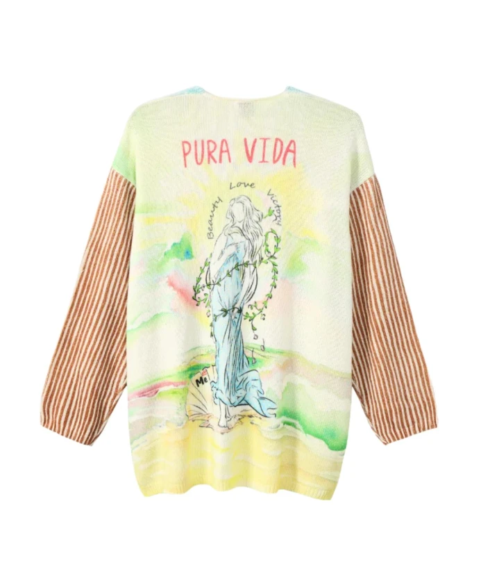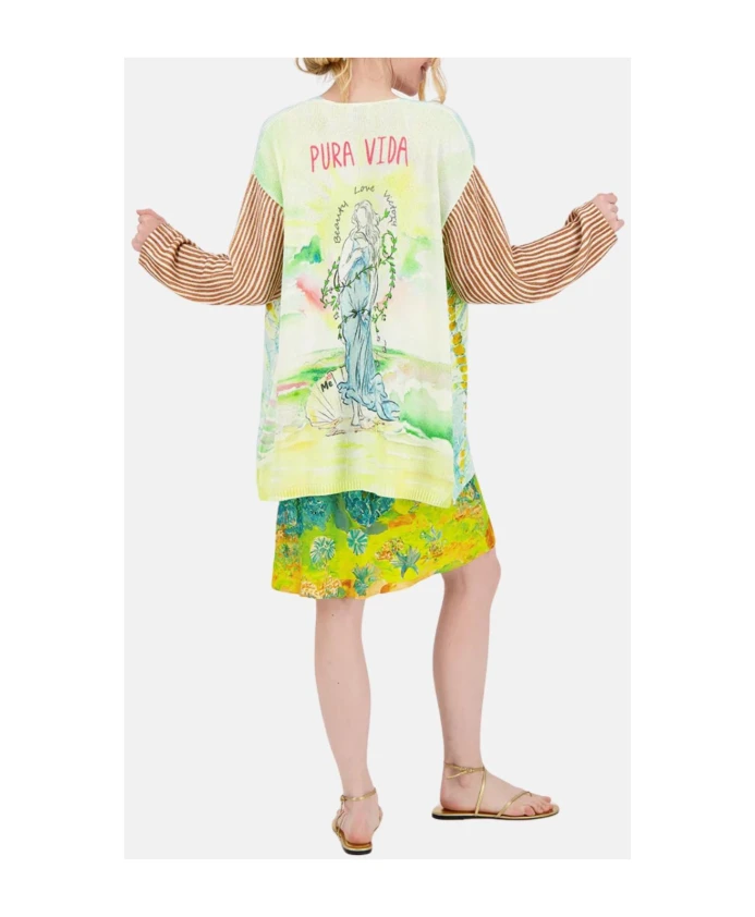 Кардиган ME369 Pura Vida - это открытый кардиган с длинными рукавами, украшенный комбинированными принтами и эффектным изображением Венеры с надписью «PURA VIDA» на спине. Созданный как эффектный элемент многослойного образа, он подчеркивает контрастные принты на передней, задней части и рукавах. Ключевые особенности: Многоцветный | Вискоза | Открытый перед | Длинные рукава | Комбинированный принт по всей поверхности | Различные принты на передней, задней части и рукавах | Графическое изображение Венеры и надпись «PURA VIDA» на спине | Состав и уход: 100% вискоза | Ручная стирка в холодной воде. Не сушить в сушилке. Гладить при низкой температуре. Не отбеливать.
