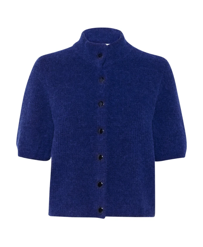 Укороченный мягкий кардиган Gestuz Alphagz Ss с короткими рукавами и высоким воротником идеально подходит для многослойной одежды в переходную погоду. Основные характеристики: Синий | Синий цвет Bellwether | Альпака | Застежка на пуговицы | Высокий воротник | Короткие рукава | Короткая длина | Ребристый низ | Размеры и посадка: Длина спереди: 52 см | Длина сзади: 51 см | Стандартный крой | Состав и уход: 32% альпака | 32% шерсть | 30% полиэстер | 6% эластан | Ручная стирка при температуре не выше 30°C. Не отбеливать. Не сушить в сушильной машине. Гладить при температуре не выше 110°C. Рекомендуется бережная химчистка.