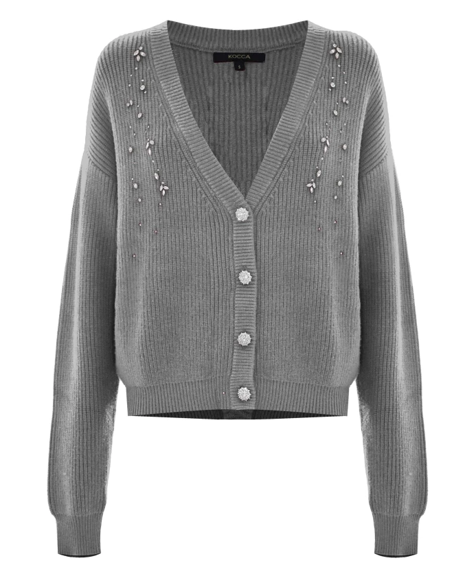Кардиган Kocca Balbina сочетает глубокий V-образный вырез с декорированными пуговицами, создавая изысканный, но в то же время элегантный образ. Декоративная жемчужная отделка спереди и ребристые манжеты делают его идеальным для создания стильного повседневного образа. Ключевые особенности: Серый | Меланж | Вискоза, Полиэстер, Полиамид | Застежка на пуговицы спереди | Глубокий V-образный вырез | Жемчужная отделка спереди | Крупные пуговицы с драгоценными камнями | Ребристые манжеты на талии, рукавах и вырезе горловины | Размеры и посадка: Рост модели 175 см, размер S/42 | Состав и уход: Вискоза | Полиэстер | Полиамид