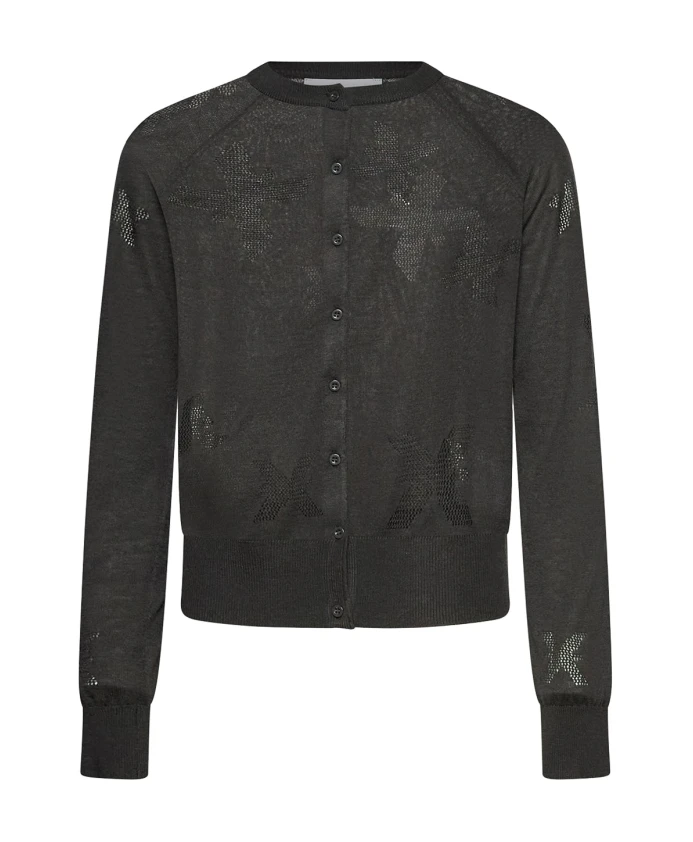 Кардиган Richmond с круглым вырезом сочетает в себе легкий трикотаж с контрастными ажурными вставками и микроскопическими заклепками в форме звезд, создавая расслабленный, но в то же время изысканный образ. Ключевые особенности: Черный | Черный | Полиэстер | Застежка на пуговицы спереди | Можно носить расстегнутым или застегнутым | Круглый вырез | Легкий трикотаж | Контрастные ажурные вставки | Микрозаклепки в форме звезд | Пуговицы в тон спереди | Прозрачные/ажурные детали | Состав ткани и уход: 40% полиэстер | 30% акрил | 20% нейлон | 5% шерсть | 5% шелк