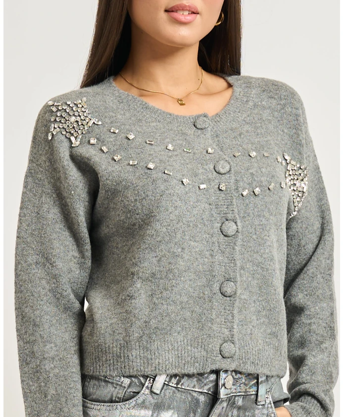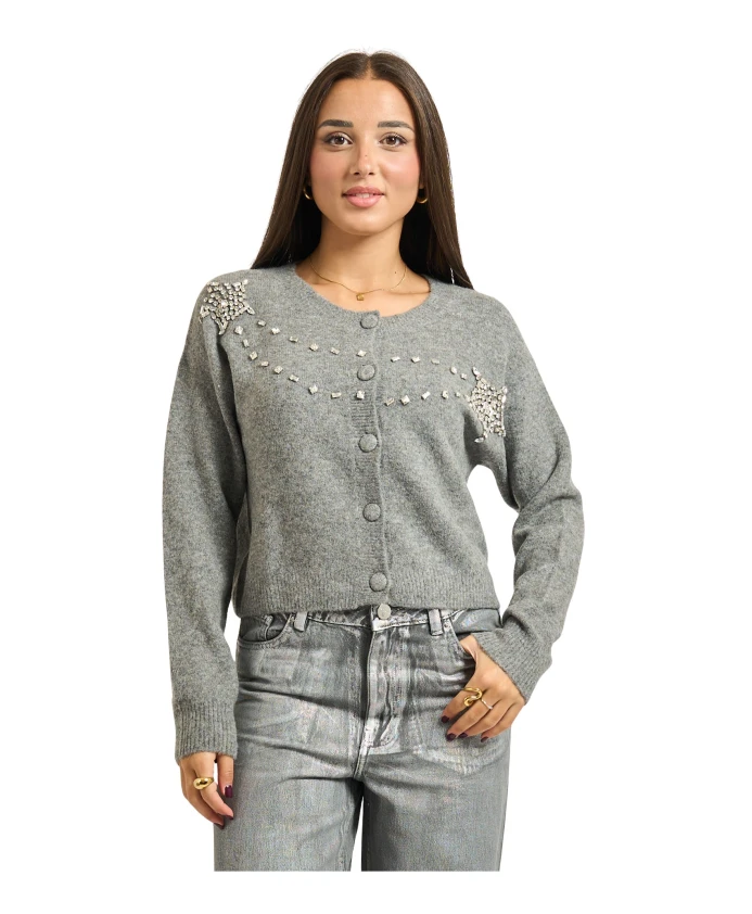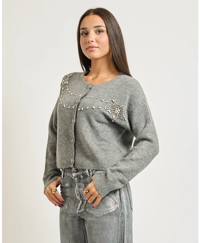 Кардиган Regular Con Stella Con Pietre Luminose Fracomina, серый