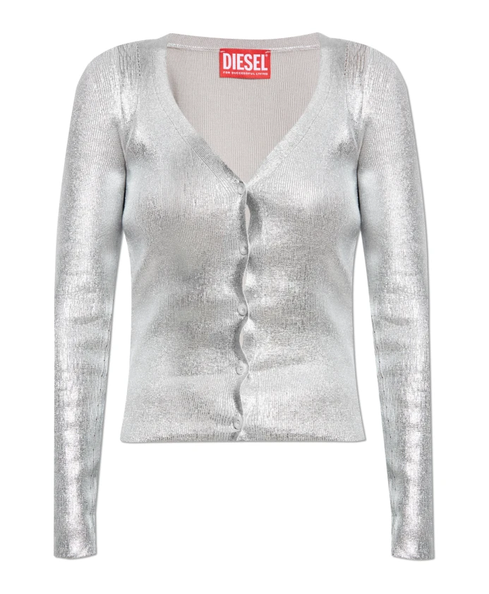 Представляем кардиган M-ISOTTA из эксклюзивной коллекции Diesel, изготовленный из роскошной, переливающейся серебристой ткани. Этот кардиган воплощает современную элегантность благодаря классическому, приталенному крою, длинным рукавам и глубокому V-образному вырезу. Ключевые особенности: Серебристый | Серый | Роскошная, переливающаяся серебристая ткань | Сдержанная застежка на пуговицы | Классический, приталенный крой | Длинные рукава | Глубокий V-образный вырез | Металлический логотип Diesel | Размеры и посадка: Классический, приталенный крой