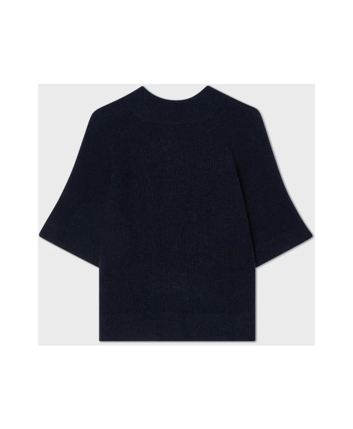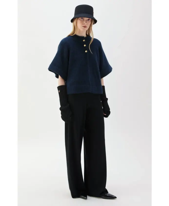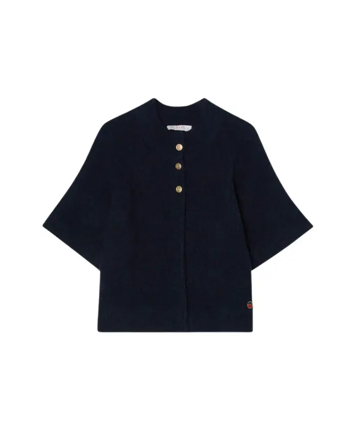 Кардиган Vilanie от Busnel - это кардиган в стиле накидки, изготовленный из роскошной смеси мохера и шерсти, обладающий пушистой и мягкой текстурой. Его отличительная черта - элегантный силуэт, созданный круглым вырезом и рукавами-крылышками, идеально подходящий для ношения поверх рубашек оверсайз. Ключевые особенности: Темно-синий меланж | Синий | Мохер | Шерсть | Круглый вырез | Рукава-крылышки | Три золотые пуговицы | Размер и посадка: Соответствует размеру | Состав и уход: 33% мохер | 33% шерсть | 28% нейлон | 6% эластан | Ручная стирка