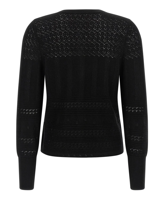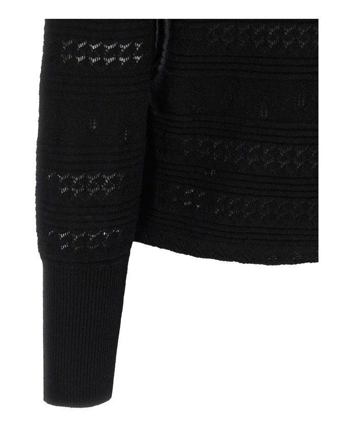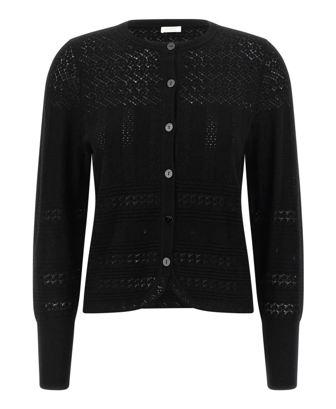 Кардиган ERES Trio - это ажурный кардиган из шерсти и кашемира, созданный для изысканных многослойных образов. Круглый вырез и застежка на пуговицы добавляют элегантности и тепла повседневным нарядам. Ключевые особенности: Черный | Шерсть и кашемир | Легкий трикотаж | Небольшая эластичность | Застежка на пуговицы спереди | Ребристые манжеты | Круглый вырез | Длинные рукава с манжетами | Ажурный (пуантельный) трикотаж | Размеры и посадка: Соответствует размеру | Прямой крой | Состав ткани и уход: 70% шерсть, 30% кашемир | Ручная стирка.