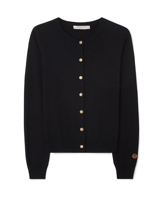 Кардиган Busnel Kee - это вневременная трикотажная вещь, искусно изготовленная из 100% сверхтонкой мериносовой шерсти. Его прямой силуэт и семь золотых пуговиц в форме буквы B делают его универсальным дополнением к любому гардеробу. Основные характеристики: Черный | 100% сверхтонкая мериносовая шерсть | Прямой силуэт | Семь золотых пуговиц в форме буквы B | Размер и посадка: Соответствует стандартному размеру, заказывайте свой обычный размер | Состав и уход: 100% сверхтонкая мериносовая шерсть | Машинная стирка при 30°C