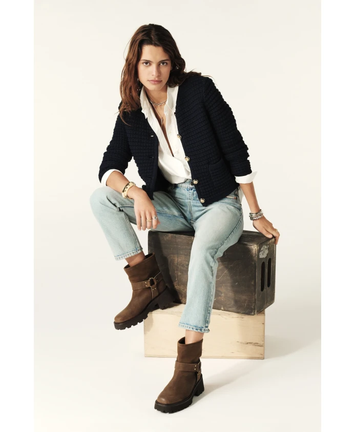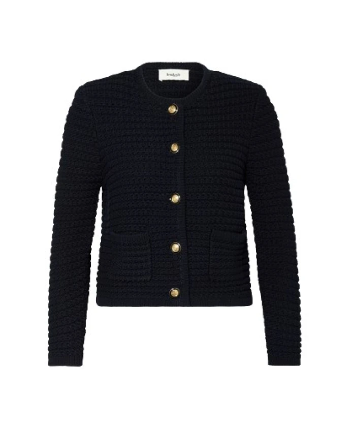 Кардиган GASPARD от Ba&Sh невероятно удобен и универсален. Благодаря рукавам до локтя и круглому вырезу горловины он излучает элегантность и современный стиль. Манжеты остаются открытыми, а пуговицы спереди переливаются на свету, заставляя вас сиять. Техническая трикотажная ткань «оттоман» добавляет текстуру и создает неотразимый твидовый эффект. Нам очень нравятся плечевые подкладки, которые придают изделию структуру и нотку элегантности. Идеально сочетается с юбкой или брюками! Материал: 75% хлопок / 25% полиамид.