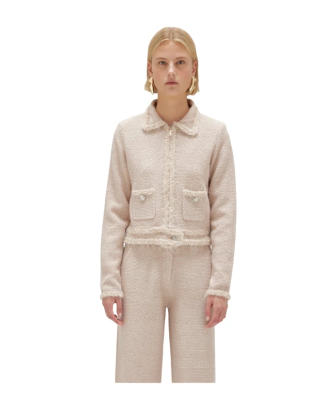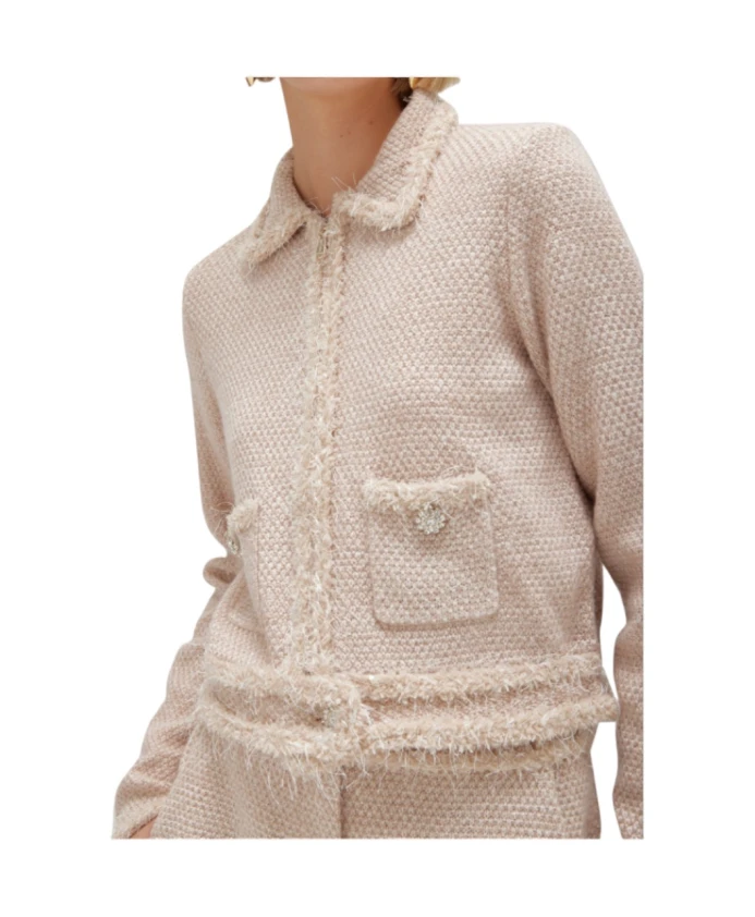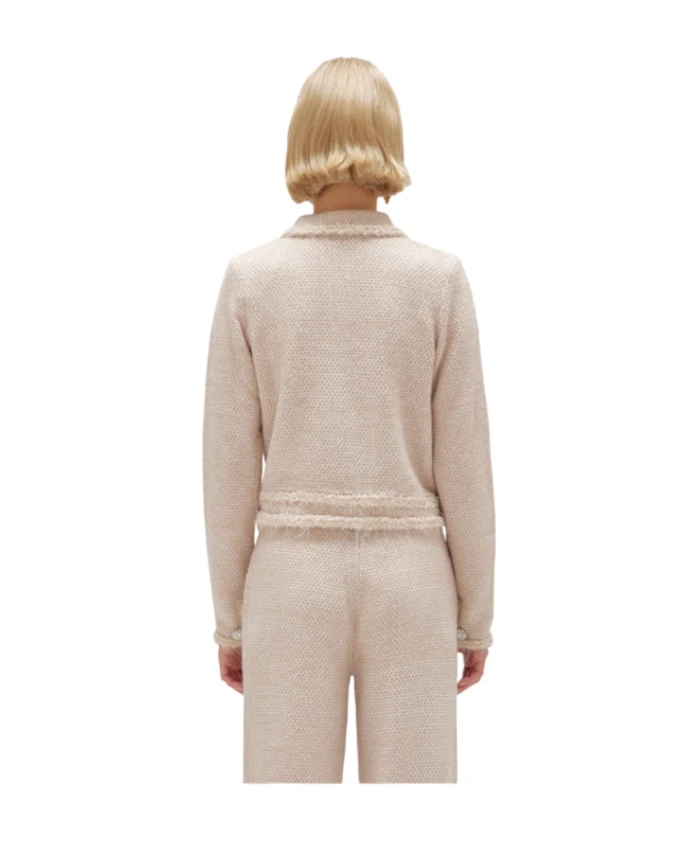 Кардиган Blugirl Mouliné сочетает в себе трикотаж с эффектом твида и двухцветную бахрому, а также свободный силуэт, создавая элегантные и универсальные многослойные образы. Ключевые особенности: Бежевый | Морганитовый | Масляный | Акрил | Металлическая молния | Передние карманы | Пуговицы с кристаллами | Трикотаж с эффектом твида | Двухцветная бахрома | Воротник | Длинные рукава | Эффект двойного подола | Размеры и посадка: Свободный крой | Состав ткани и уход: 85% поликарбонат, 9% полиамид, 6% полимолочная кислота