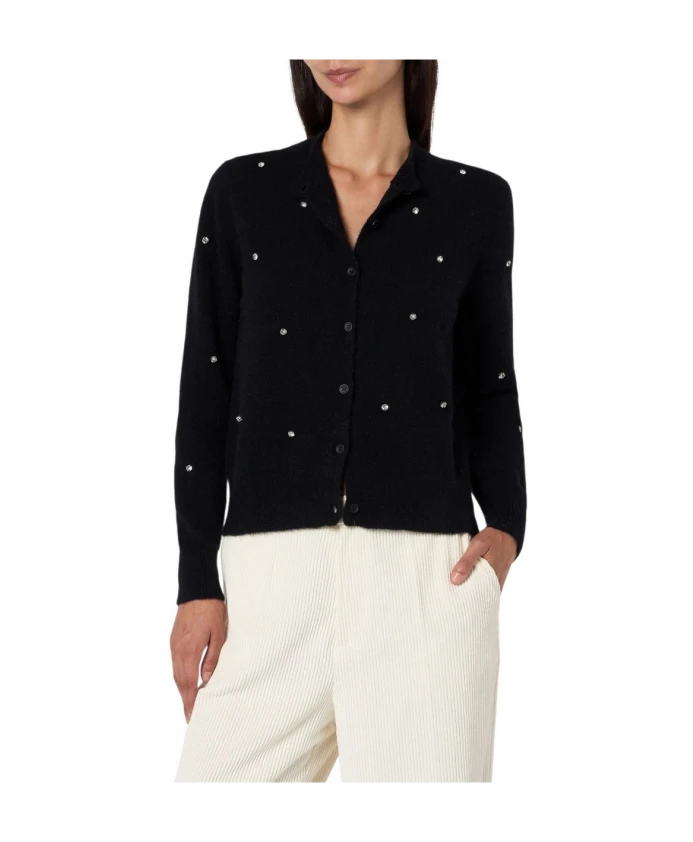 Кардиган MC2 Saint Barth Bellamy сочетает в себе мягкую шерсть альпаки и сверкающие стразы, создавая изысканный образ для выхода в свет. Круглый вырез и застежка на семь пуговиц делают его универсальным вариантом как для особых случаев, так и для элегантных повседневных образов. Ключевые особенности: Черный | Шерсть альпаки | Застежка на семь пуговиц | Ребристый низ и манжеты | Круглый вырез | Украшение стразами | Размер: Стандартный | Состав и уход: 32% шерсть альпаки | 32% шерсть | 30% полиамид | 6% эластан