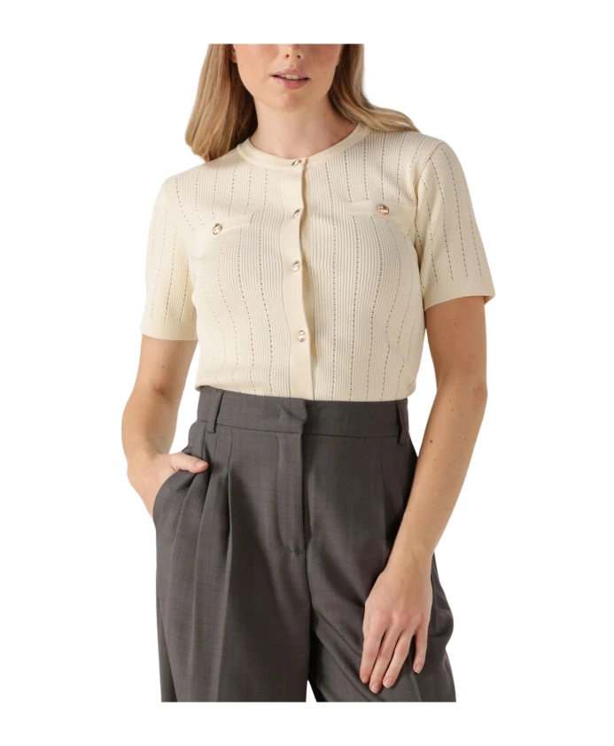 Кардиган Suncoo Geriz - короткий кардиган ажурной вязки с золотыми пуговицами, созданный для легких весенних и летних многослойных образов. Ключевые особенности: кремовый цвет | вискоза | застежка на пуговицы спереди | ажурная вязка | короткие рукава | круглый вырез | золотые пуговицы | Размер и посадка: соответствует размеру; если вы находитесь между размерами, выберите на размер больше | Состав ткани и уход: 65% вискоза | 35% полиамид | очень бережная машинная стирка; сушить в горизонтальном положении.