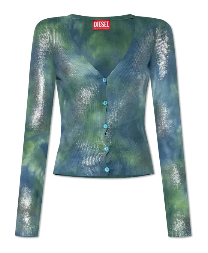 Представляем эксклюзивный кардиган M-Isotta от Diesel - идеальное сочетание современной элегантности и классического стиля. Этот кардиган украшен ярким зелено-синим узором в стиле тай-дай, который придаст неповторимый шарм любому образу. Ключевые особенности: Зеленый | Синий | Хлопок | V-образный вырез | Длинные рукава | Синие пуговицы | Металлический логотип Diesel | Крой: Приталенный | Состав и уход: 100% хлопок | Машинная стирка в холодной воде, сушка в барабане при низкой температуре.