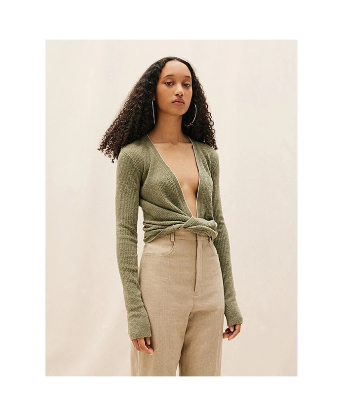 Витой кардиган с глубоким вырезом Jacquemus, зеленый