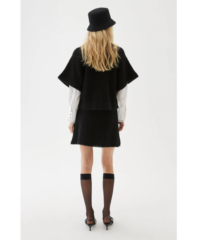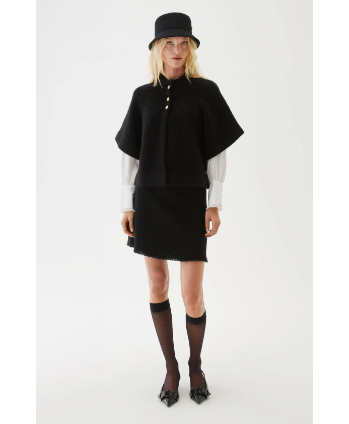 Откройте для себя кардиган Vilanie от Busnel - кардиган в стиле накидки, изготовленный из роскошной смеси мохера и шерсти. Этот кардиган обладает пушистой и мягкой текстурой, идеально подходящей для ношения поверх рубашки свободного кроя. Ключевые особенности: Черный | Мохер | Шерсть | Нейлон | Круглый вырез | Рукава-крылышки | Золотистые пуговицы | Размер и посадка: Соответствует размеру | Состав и уход: 33% мохер | 33% шерсть | 28% нейлон | Машинная стирка при 30 градусах