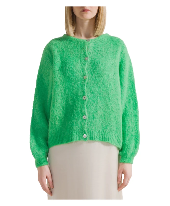 Оставайтесь в тепле и выглядите стильно с кардиганом Susan от AMERICANDREAMS. Изготовленный в Италии из шерсти альпаки, этот кардиган обеспечивает превосходное тепло и долговечность по сравнению с овечьей шерстью. Ключевые особенности: Яркий зеленый цвет | Шерсть альпаки | Превосходное тепло | Долговечность | Эластичный низ и манжеты | Плотная, пушистая вязка | Детали на пуговицах | Посадка и размер: Стандартный крой | Состав и уход: Шерсть альпаки | Только химчистка