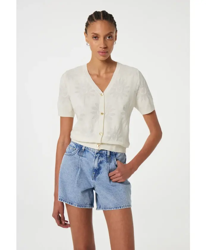 Кардиган Maddy от Fabienne Chapot станет очаровательным дополнением вашего гардероба. Он украшен золотыми пуговицами в форме сердечек и игривым, легким принтом в виде клубники на уютной белой ткани. Ключевые особенности: Кремово-белый | Белый | Мягкая ткань | Короткие рукава | Золотые пуговицы в форме сердечек | Легкий принт в виде клубники | Размер и посадка: Стандартный крой | Состав и уход: Машинная стирка в холодной воде, сушка в барабане при низкой температуре.