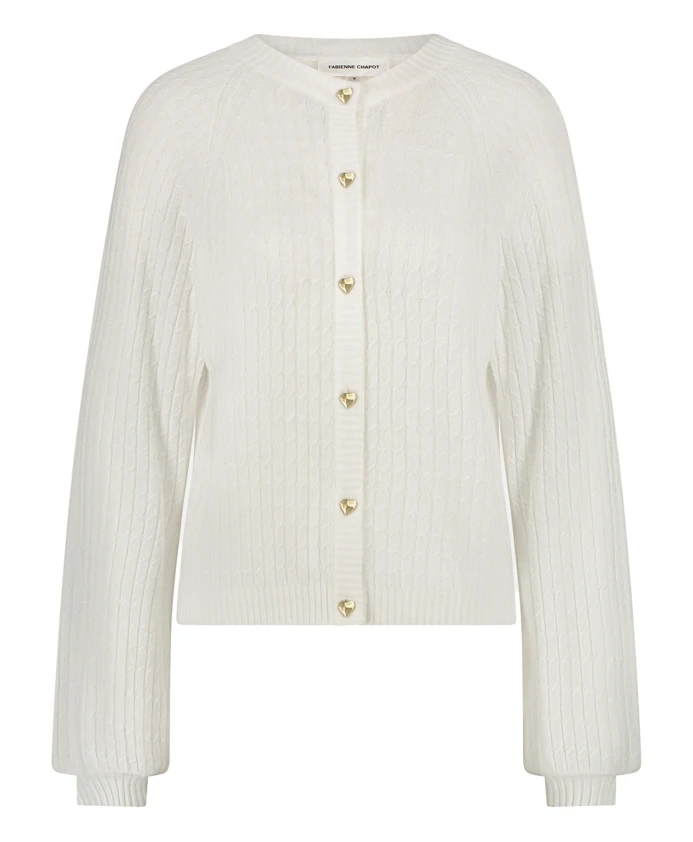 Откройте для себя кардиган Charlotta от Fabienne Chapot - роскошный трикотажный кардиган с элегантными золотистыми пуговицами в форме сердечек и длинными рукавами. Этот кремово-белый/бежевый кардиган сочетает в себе комфорт и стиль, что делает его идеальным выбором для повседневной носки. Ключевые особенности: кремово-белый/бежевый/элегантный/элегантный/элегантный/элегантный/элегантный/элегантный/элегантный/длинные рукава/размеры и посадка: стандартный крой