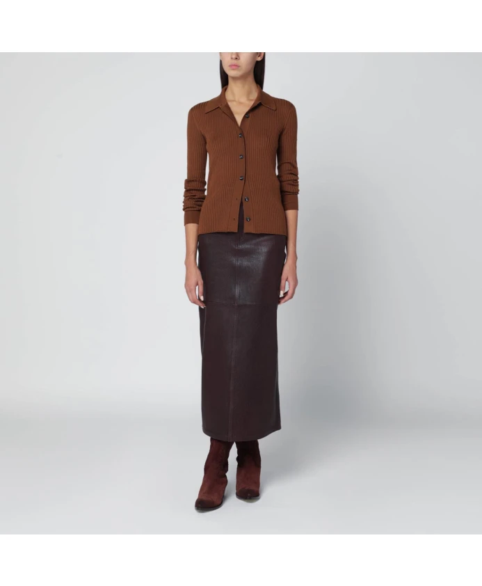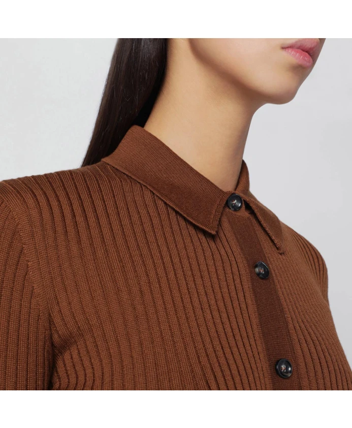 Короткий кардиган Roberto Collina Maglia из мериносовой шерсти в рубчик предназначен для многослойного ношения. Он имеет воротник рубашечного типа и застежку на пуговицах, что создает изысканный и универсальный образ. Ключевые особенности: Коричневый | Мериносовая шерсть | Застежка на пуговицах | Ребристая текстура | Воротник рубашечного типа | Короткая длина | Размеры и посадка: Приталенный | Состав и уход: 100% мериносовая шерсть