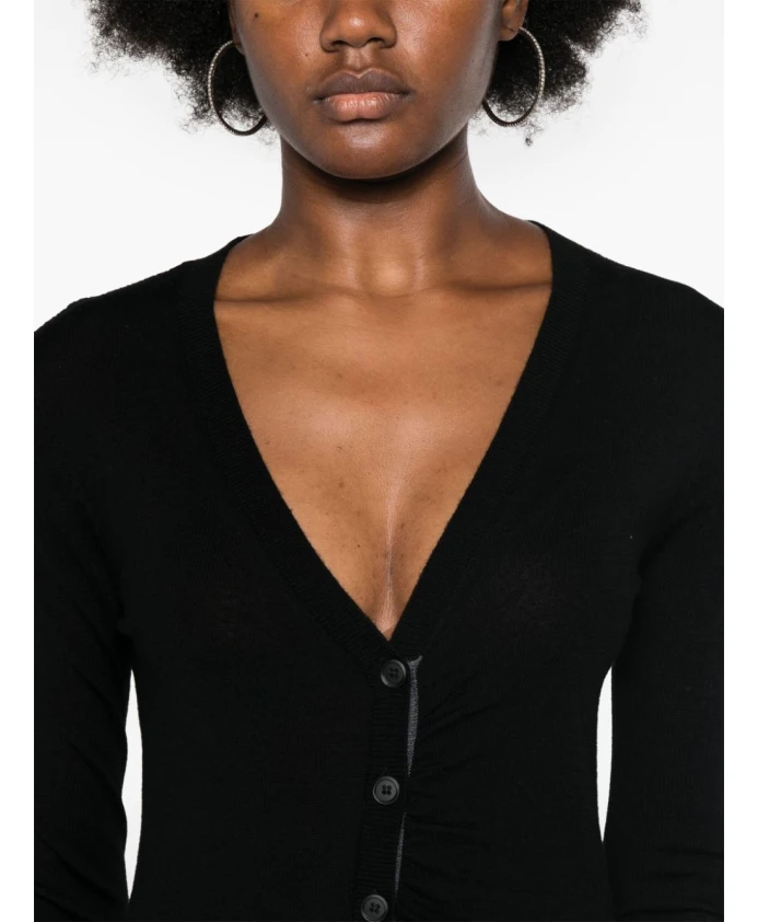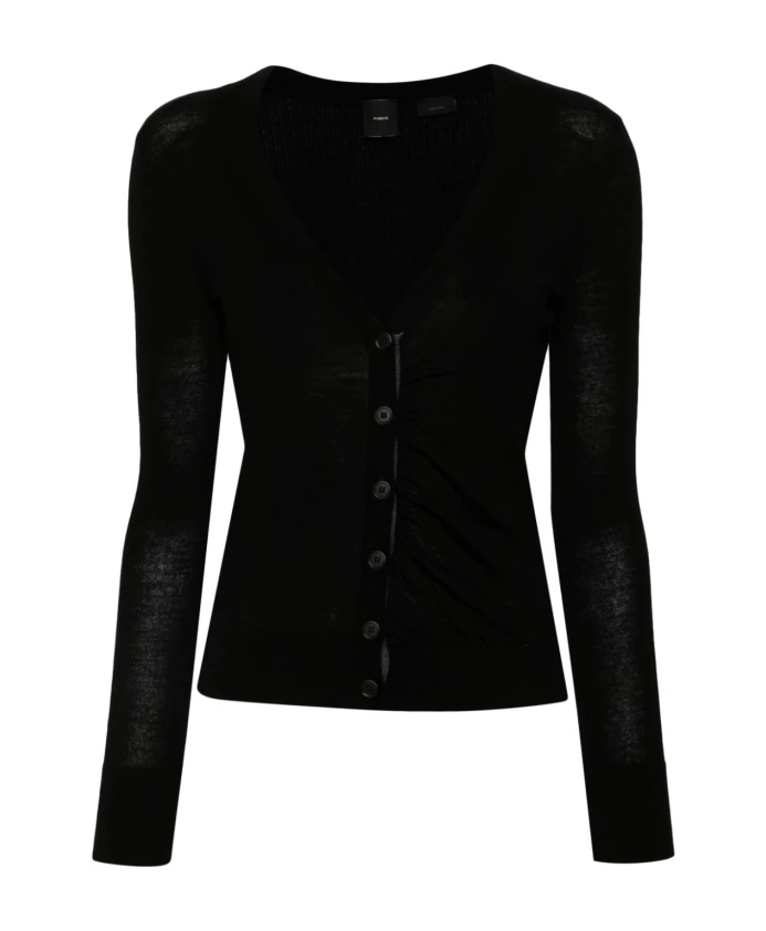 Оставайтесь в тепле и стиле с кардиганом Boise от PINKO. Он имеет приталенный крой и выполнен из мягкой шерстяной вязки. Этот кардиган идеально подходит для многослойной одежды в прохладные дни. Ключевые особенности: Цвет: Черный | Черный | 100% шерсть | Застежка на пуговицы | V-образный вырез | Длинные рукава | Ребристый низ и манжеты | Сборки | Размер и крой: Приталенный | Состав и уход: 100% шерсть | Только химчистка