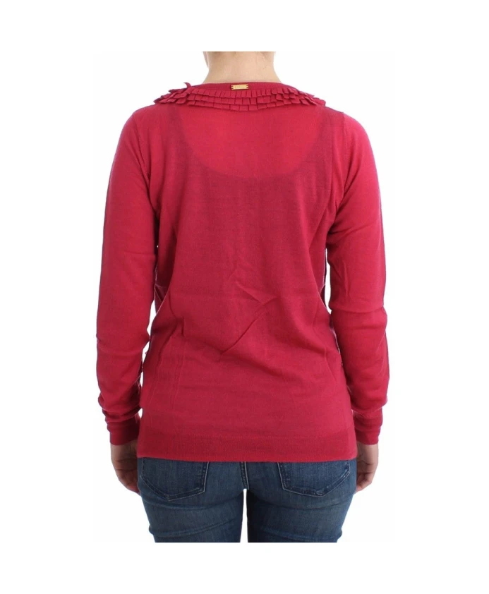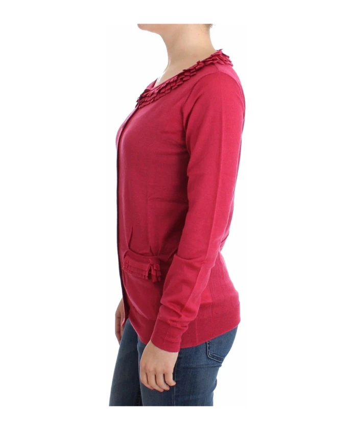 Обновите свой гардероб этим прекрасным розовым шерстяным кардиганом от John Galliano. Изготовленный из 100% шерсти, этот кардиган украшен женственными оборками и застегивается на пуговицы спереди. Знаменитый логотип John Galliano добавляет нотку роскоши. В комплекте с оригинальными бирками и фирменным пакетом, этот кардиган - обязательный элемент гардероба каждой модницы.