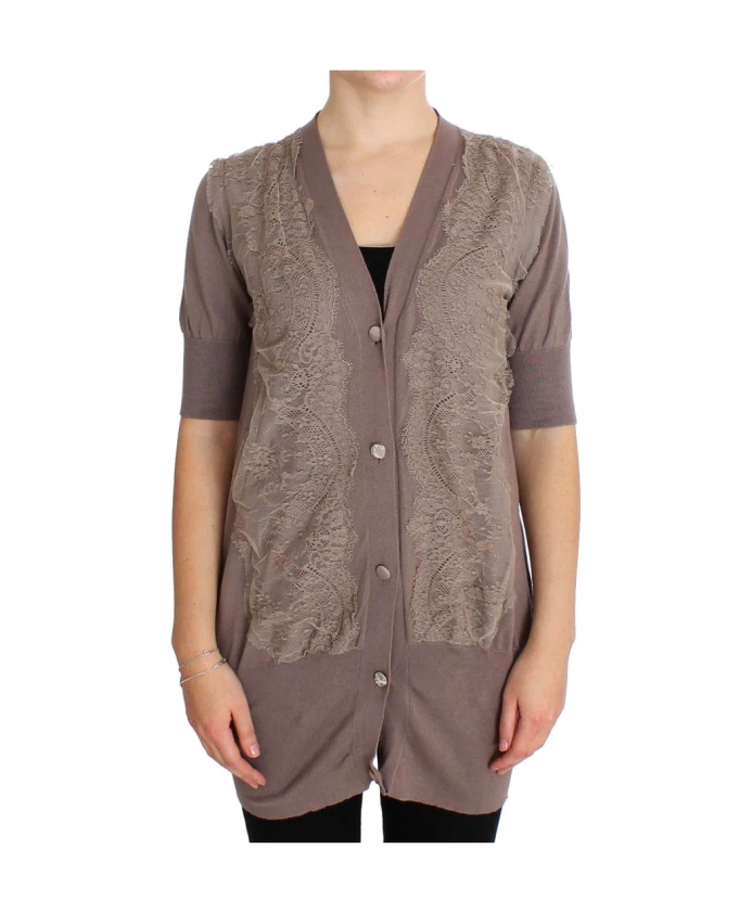 Кардиган Pink Memories: Кардиган с нежным хлопковым кружевом - легкий и женственный элемент многослойного образа. Изготовлен в Италии, новый, с бирками. Застегивается на пуговицы по всей длине для удобства ношения. Ключевые особенности: Фиолетовый | Хлопок | Застежка на пуговицы по всей длине | Кружевные детали | Логотип | Состав и уход: 100% хлопок