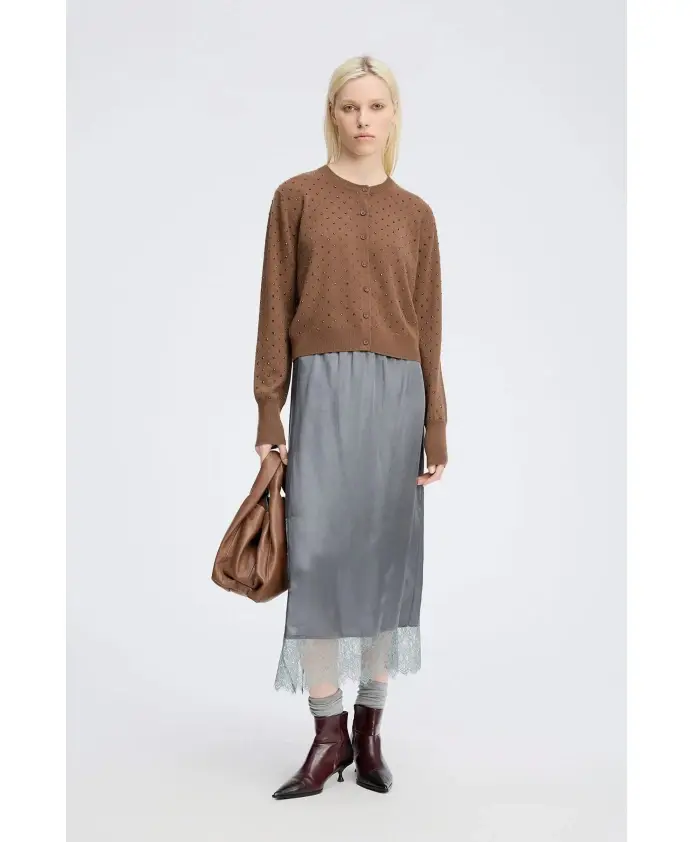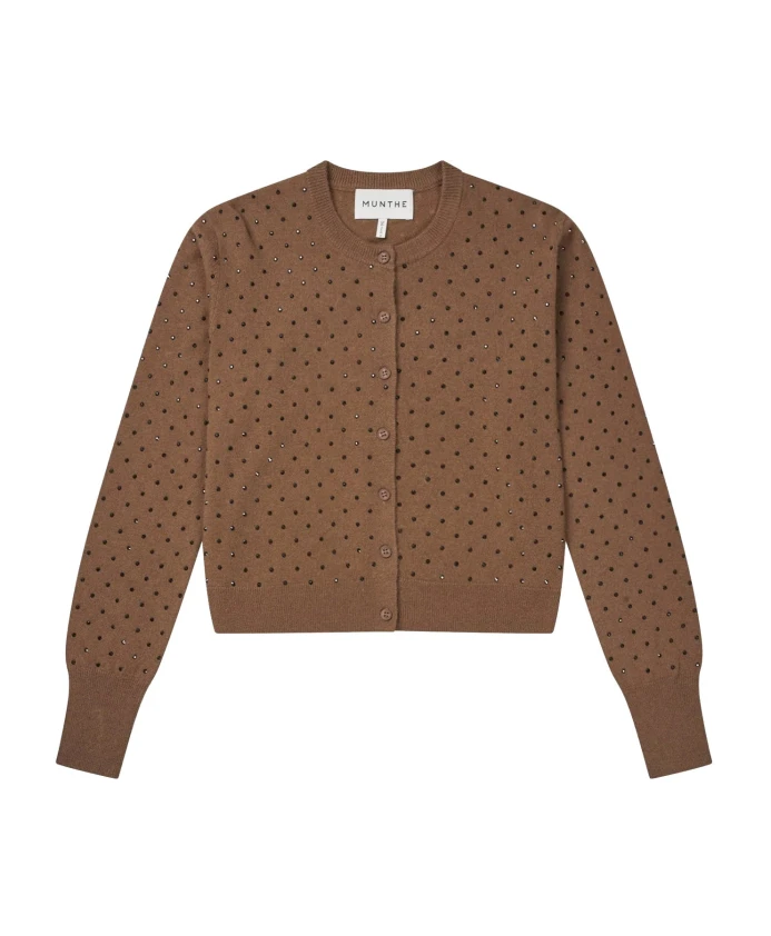 Кардиган Munthe теплого коричневого оттенка, созданный для легкого многослойного образа и повседневной носки. Легкая трикотажная конструкция делает его подходящим для переходных сезонов и повседневной одежды. Ключевые особенности: Коричневый
