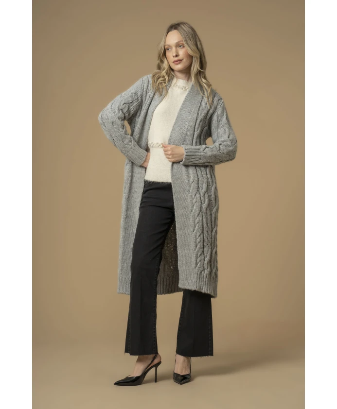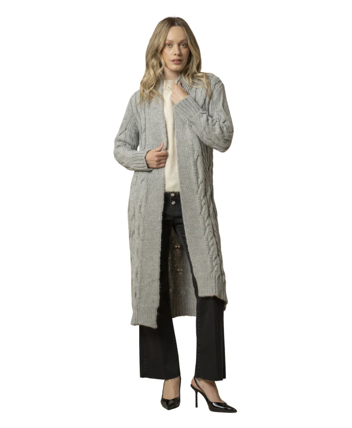 Традиционный, стильный длинный кардиган с открытым передом из капсульной коллекции Pure Verve, с ребристыми манжетами и поясом, выполненный из трикотажа по всей поверхности. Рост модели 175 см, размер S/42.