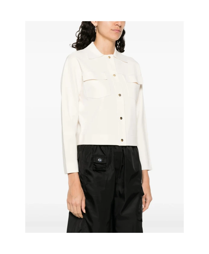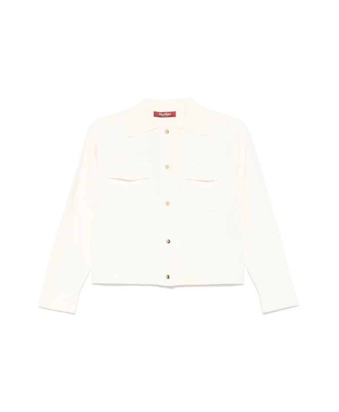 Белый кардиган Max Mara Studio с застежкой на пуговицы, двумя нагрудными карманами с клапанами, отложным воротником и длинными рукавами, для женщин.