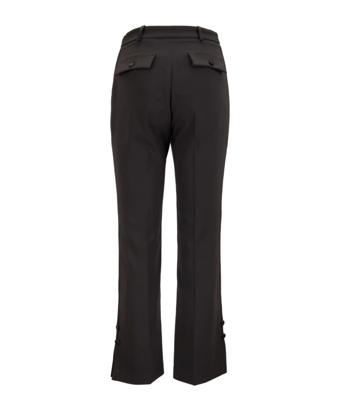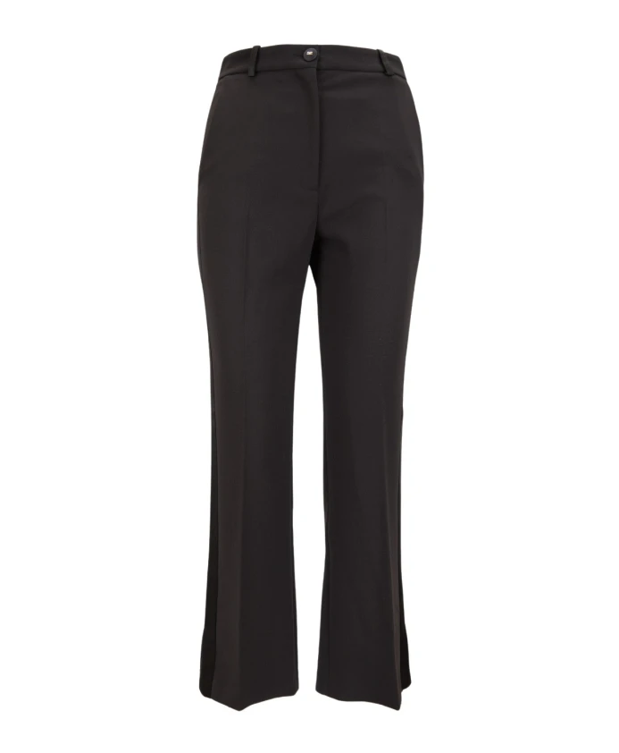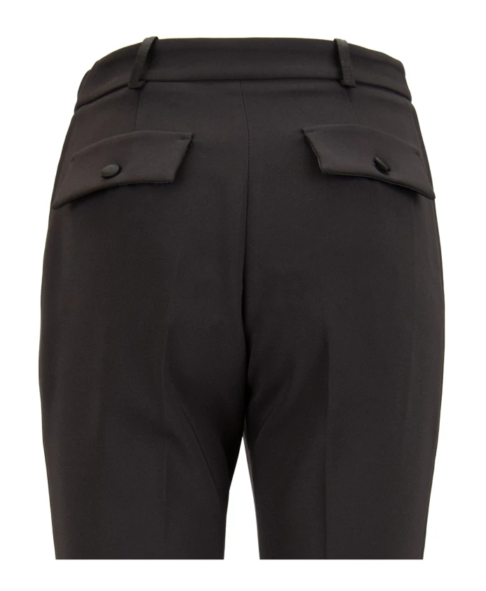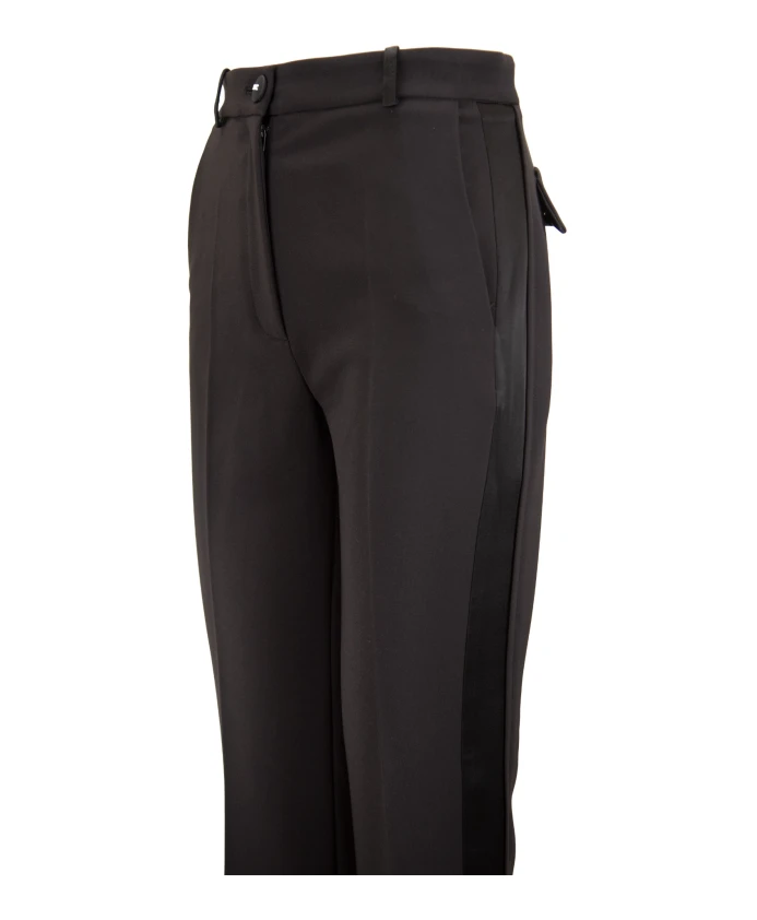 Брюки-смокинг из крепа от Elisabetta Franchi сочетают в себе приталенный крой и блестящие атласные боковые полосы, создавая элегантный образ для выхода в свет. Укороченный силуэт и изысканные детали делают их идеальными для торжественных случаев или утонченной повседневной носки. Ключевые особенности: Черный | Черный | Полиэстер | Передние боковые карманы | Застежка спереди на пуговицу с логотипом, молнию и внутреннюю пуговицу | Контрастные атласные боковые полосы | Мини-разрезы на щиколотках с отделкой пуговицами | Имитация задних карманов с пуговицами | Укороченные штанины до щиколотки | Размеры и посадка: Талия (см): 35 (42) | Общая длина (см): 97 (42) | Зауженный крой Состав материала и уход: 95% полиэстер, 5% эластан (основная ткань) | 82% ацетат, 18% вискоза (вставки) | 97% полиэстер, 3% эластан (подкладка)