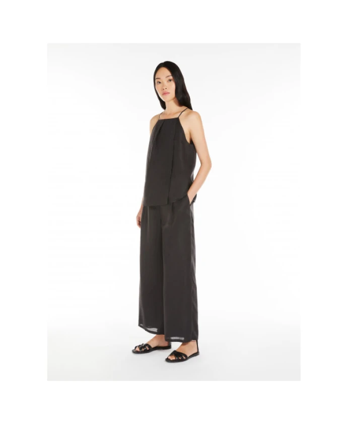 Брюки Dazzy Ramie из легкой рамиевой ткани от Max Mara - это широкие брюки прямого кроя, созданные для комфортной носки в теплую погоду, с чистым и элегантным силуэтом. Ключевые особенности: Черный | Рами | Наклонные боковые карманы | Скрытая застежка на молнию и пуговицу | Застежка на крючок и петлю | Широкие штанины | Прямой крой | Вытачки на талии | Высокая талия | Размеры и посадка: Широкий крой | Высокая талия | Состав ткани и уход: Ткань: 100% рами | Подкладка: 100% рами | Машинная стирка в холодной воде, деликатный режим; не отбеливать; не сушить в сушильной машине; сушить в тени; гладить при низкой температуре; профессиональная химчистка с перхлорэтиленом - щадящий процесс.