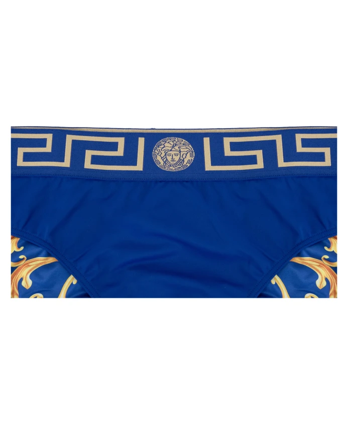 Обновите свою коллекцию купальников с помощью этих мужских плавок от Versace. Изготовленные в Италии, внешние плавки представляют собой смесь 78% полиамида и 22% эластана, а подкладка - 88% полиэстера и 12% эластана. Отделка состоит из 82% полиэстера, 9% эластана и 9% полиамида. На внутренней подкладке этих плавок изображен культовый мотив Versace, а эластичный пояс украшен логотипом бренда и фирменным греческим мотивом контрастного цвета. Доступны размеры по талии 44(7) и 46(8) см, общая длина - 29(7) и 30(8) см.