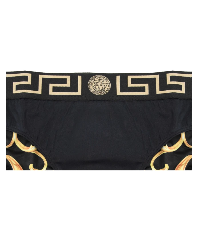 Обновите свою коллекцию купальников с помощью этих мужских плавок от Versace. Изготовленные в Италии, эти плавки украшены культовым логотипом бренда на подкладке. Эластичный пояс декорирован логотипом бренда и фирменным греческим орнаментом контрастного цвета. Созданные для комфорта и стиля, эти плавки - обязательный элемент гардероба каждого мужчины. Доступны в различных размерах.
