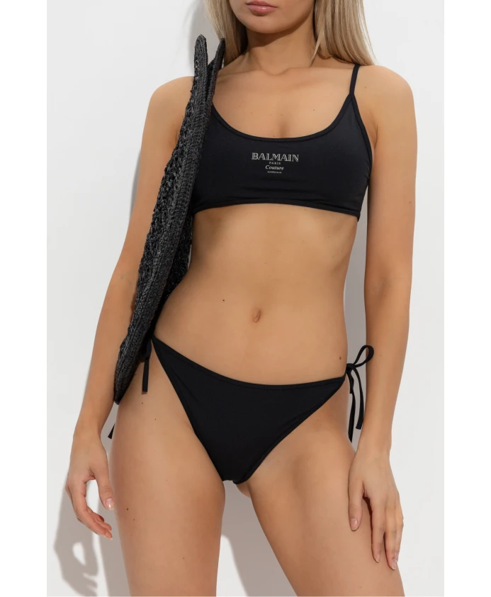 Купальник-бикини Balmain из двух частей - исключительно изысканный выбор для летних дней, воплощающий в себе суть современной элегантности. Уникальный крой сочетает в себе классический укороченный топ с тонкими бретелями и четко очерченные плавки-бикини с боковыми завязками, которые деликатно подчеркивают силуэт и отсылают к вневременной форме «песочные часы» - культовой особенности этого французского бренда. Купальник изготовлен из гладкой, эластичной ткани, обеспечивающей идеальную посадку и комфорт даже во время водных видов спорта. Насыщенный, глубокий черный цвет добавляет минималистичный штрих исключительной элегантности и гарантирует множество вариантов стилизации. Престиж изделия дополнительно подчеркивает логотип Balmain на передней части бюстгальтера - символ роскоши и утонченного вкуса. ПОЧЕМУ ЭТОТ ТОВАР СТОИТ КУПИТЬ? * Уникальный крой, гармонично подчеркивающий женский силуэт * Роскошное мастерство и культовый логотип Balmain * Непревзойденный комфорт благодаря тщательно отобранным материалам * Вневременная элегантность и минимализм Параметры модели Рост: 176 см Обхват груди: 85 см Обхват талии: 60 см Обхват бедер: 89 см Модель носит размер: XS