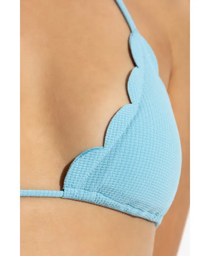 Верхняя часть бикини Marysia - это воплощение мастерства и вневременного минимализма. Она имеет классическую треугольную форму с элегантными завязками на шее и спине, обеспечивающими индивидуальную посадку и исключительный комфорт. Высококачественная ткань отличается нежной, рельефной микроклетчатой текстурой, дополнительно подчеркнутой едва заметными мерцающими волокнами. Суть дизайна заключается в волнистом крае чашечек, который придает изделию уникальную и женственную легкость. Отсутствие видимых логотипов свидетельствует о сдержанной роскоши. Силуэт вдохновлен точностью балета и любовью к серфингу, в результате чего получается непревзойденное сочетание элегантности, функциональности и быстросохнущей ткани. ПОЧЕМУ СТОИТ ВЫБРАТЬ ЭТОТ ПРОДУКТ? * Исключительная детализация - волнистый край, подчеркивающий женственную нежность * Идеальная посадка благодаря регулируемым бретелям * Роскошная ткань с тонкой микроклетчатой текстурой * Минималистичный, вневременной стиль без видимых логотипов * Дизайн вдохновлен мировой модой и искусством балета. Параметры модели: Рост: 176 см, Обхват груди: 85 см, Обхват талии: 60 см, Обхват бедер: 89 см. Модель носит размер: S