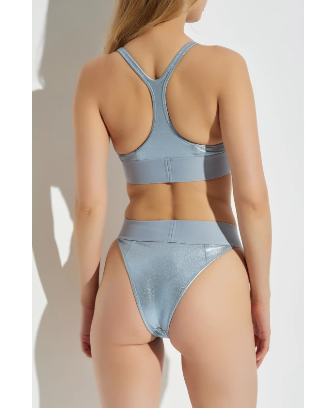 Верхняя часть бикини DIESEL излучает сдержанную роскошь, подчеркнутую изысканным спортивным укороченным силуэтом. Эта модель имеет широкую эластичную ленту под грудью и фирменный дизайн спинки-борцовки, обеспечивающие исключительный комфорт и поддержку во время активности. Светло-голубой оттенок, дополненный нежным металлическим блеском, воплощает в себе нотку современной элегантности. Гладкая поверхность ткани, лишенная лишних украшений и украшенная смелым логотипом «DIESEL» нежно-розового цвета, воплощает в себе суть модного минимализма. Изысканный блеск материала идеально подчеркивает эксклюзивный характер изделия. Отсутствие видимых застежек и бесшовная конструкция позволяют изделию гармонично облегать контуры тела. ПОЧЕМУ СТОИТ ВЫБРАТЬ ЭТОТ ТОВАР? * Эксклюзивный итальянский дизайн от бренда, известного своим превосходством * Современный спортивный крой для комфорта в течение всего дня * Уникальный блеск материала с изысканным мерцанием * Эффектный логотип как дань стильной простоте * Роскошный выбор для ценителей современной элегантности Параметры модели Рост: 176 см Обхват груди: 85 см Обхват талии: 60 см Обхват бедер: 89 см Модель носит размер: S
