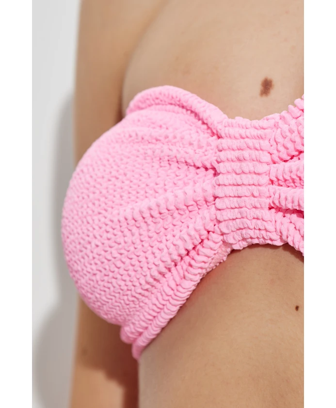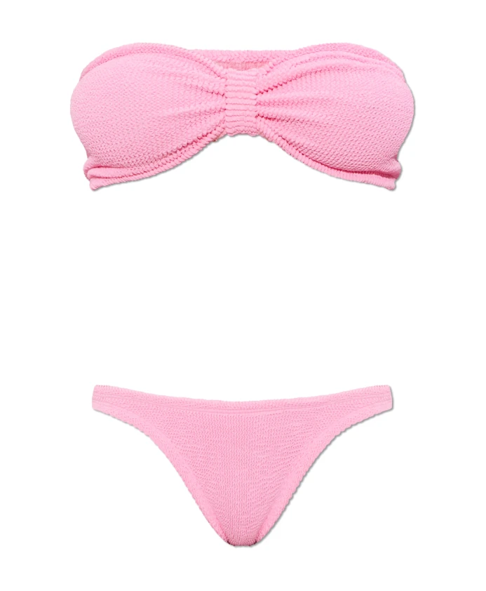 Бикини Hunza G Tina сочетает в себе фирменный жатый трикотаж бренда с минималистичным силуэтом бандо для комфортного принятия солнечных ванн и визуального удлинения ног. Светло-розовый присборенный топ-бандо и трусики с высокой талией создают изысканный, моделирующий образ с мягкой, текстурированной поверхностью. Ключевые особенности: Светло-розовый | Полиамид | Эластичная, сохраняющая форму ткань | Легкая поддержка груди | Мягкая, комфортная на ощупь | Бандо без бретелей, идеально подходит для принятия солнечных ванн | Изысканные детали для скульптурного силуэта | Легко надевать и снимать | Топ-бандо с центральной сборкой | Трусики-бразильцы с высокой талией | Минималистичный однотонный дизайн | Объемная жатая текстура Размеры и посадка: Замеры модели - Рост: 177 см; Обхват груди: 83 см; Обхват талии: 61 см; Обхват бедер: 89 см; Модель носит размер: UNI | Один размер (подходит примерно для EU 34-46 / US 2-14) | Состав и уход: 97% полиамид, 3% эластан | Машинная стирка в теплой воде, сушка в подвешенном состоянии или в горизонтальном положении. Прополоскать после использования; избегать использования гидромассажных ванн и длительного воздействия хлора.