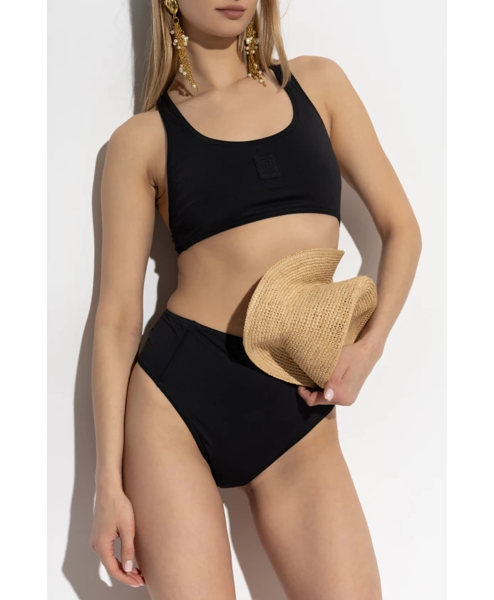 Этот купальник-двойка от BALMAIN воплощает элегантность и современность. Изготовленный из гладкой, эластичной ткани, он обеспечивает исключительный комфорт и идеальную посадку, подчеркивающую женственный силуэт. Минималистичный черный дизайн с белыми акцентами и едва заметным логотипом дизайнера делает его уникальным дополнением к любому гардеробу. Верх купальника выделяется спортивным кроем с широкими бретелями и округлым вырезом, обеспечивающим стабильность и комфорт. Трусики с высокой талией добавляют элегантности и стиля. Спинка в стиле боксеров - дополнительное преимущество для активных женщин. Этот купальник, входящий в эксклюзивную коллекцию, идеально подходит как для пляжа, так и для более формальных летних мероприятий. ПОЧЕМУ СТОИТ КУПИТЬ ЭТОТ ТОВАР? * Эксклюзивность бренда Balmain, известного своей вневременной элегантностью. * Высококачественный материал, обеспечивающий комфорт. * Универсальный крой, подчеркивающий силуэт. * Минималистичный дизайн с едва заметным логотипом дизайнера. Параметры модели: Рост: 176 см, Обхват груди: 85 см, Обхват талии: 60 см, Обхват бедер: 89 см. Модель носит размер: 40.