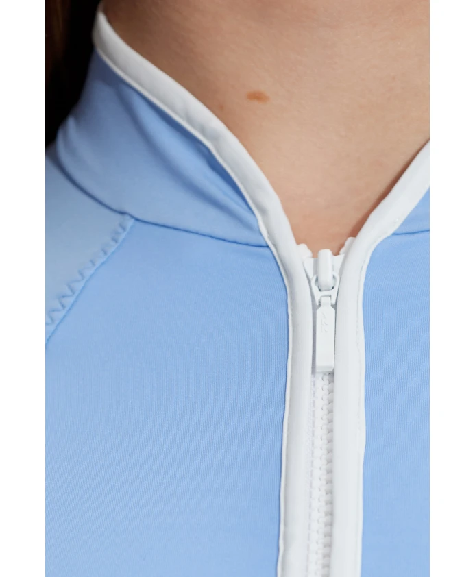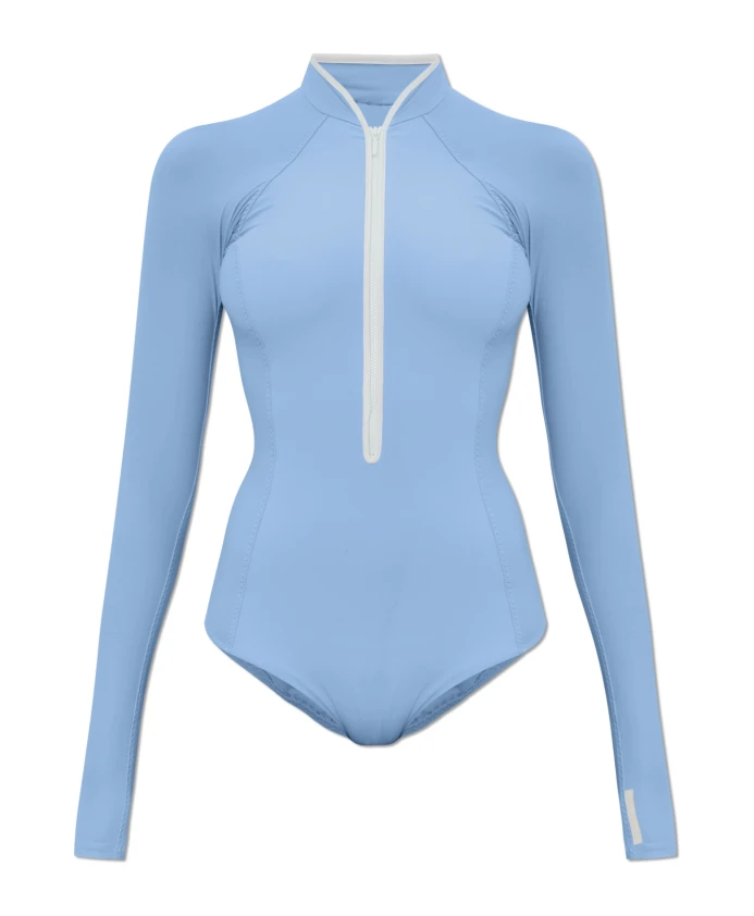 Купальник Tyra от Hunza G сочетает в себе защиту от солнца UPF с длинными рукавами, элегантный минималистичный силуэт и функциональную застежку-молнию спереди - идеально подходит для активного плавания и спокойного отдыха на пляже. Ключевые особенности: Васильковый | Синий | Белый | Полиамид | Защита от солнца UPF 50+ | Мягкая, эластичная ткань | Застежка-молния спереди | На подкладке | Резиновая деталь с логотипом | Длинные рукава | Воротник-стойка с контрастной окантовкой | Контрастная застежка-молния спереди | Средняя степень закрытости ног | Размеры и посадка: Рост: 177 см | Обхват груди: 83 см | Обхват талии: 61 см | Обхват бедер: 89 см | Модель носит размер: S | Соответствует размеру | Маленькие чашки; если вы находитесь между размерами, выберите больший размер | Средняя посадка | Состав и уход: 74% полиамид | 26% эластан | Ручная стирка в холодной воде с мягким моющим средством. Прополоскать после использования. Избегать контакта с солнцезащитным кремом, маслами и хлором. Не отбеливать. Для сушки разложите на ровной поверхности.