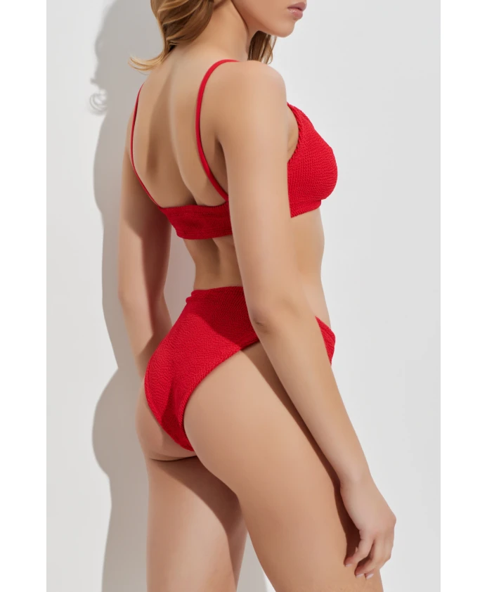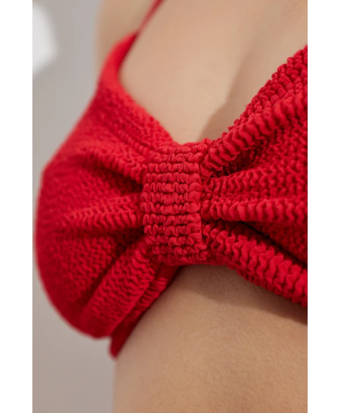 Бикини Alicia от Hunza G сочетает в себе фирменную жатую трикотажную ткань бренда с классическим силуэтом из двух частей, создавая облегающий фигуру силуэт. Ребристая текстура и присборенный верх делают этот купальник изысканным и вневременным вариантом для пляжа и бассейна. Ключевые особенности: Красный | Полиамид | Эластичная ткань для облегания фигуры | Бесшовная жатая конструкция | Фиксированные тонкие бретели | Верх без подкладки | Комплект из двух частей | Эластичная ткань для плотного прилегания | Вырез-лодочка | Присборенная центральная часть с завязками | Трусики с высокой талией | Ребристая жатая текстура | Высокий вырез для ног | Размеры и посадка: Рост модели: 177 см | Обхват груди: 83 см | Обхват талии: 61 см | Обхват бедер: 89 см | Один размер (UNI) - подходит примерно для XS-M | Соответствует размеру | Модель носит размер: UNI | Состав и уход: 97% полиамид | 3% эластан | Машинная стирка при 30°C. После использования промойте и разложите на ровной поверхности для просушки. Избегайте контакта с шероховатыми поверхностями.