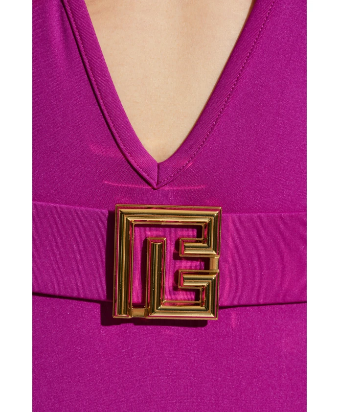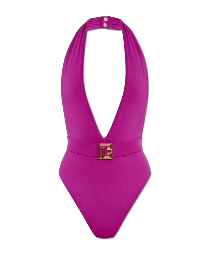 Представляем эксклюзивный купальник от известного модного дома BALMAIN. Доминирующий, насыщенный фиолетовый цвет привлекает внимание, а глубокий V-образный вырез и бретельки-халтер добавляют элегантности. Талия подчеркнута широким поясом с декоративной золотой пряжкой с геометрическим узором, что подчеркивает роскошный характер этого изделия. Открытая спинка придает купальнику современный и смелый дизайн, идеально подходящий для эксклюзивных пляжных выходов. Ткань, представляющая собой сочетание эластичного полиэстера и эластана, обеспечивает превосходную посадку и комфорт. Эта модель сочетает в себе элегантность и современный дизайн и идеально вписывается в молодежную и экстравагантную линию BALMAIN. ПОЧЕМУ СТОИТ КУПИТЬ ЭТОТ ИЗДЕЛИЕ? * Эксклюзивный дизайн от известного дизайнера * Элегантный крой с открытой спинкой * Высококачественный материал, гарантирующий комфорт * Уникальные детали, такие как золотая пряжка на талии Размеры модели Рост: 176 см Обхват груди: 85 см Обхват талии: 60 см Обхват бедер: 89 см Модель носит размер: 36