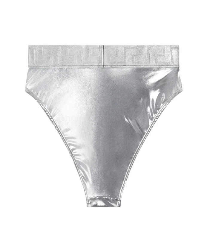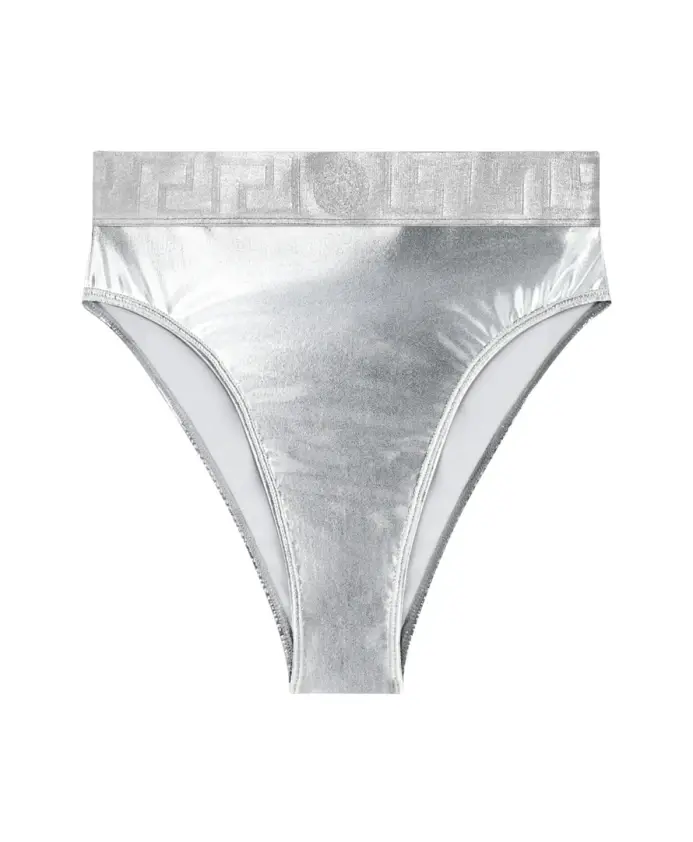 Плавки-бикини Versace Metallic отличаются металлизированным ламинированным покрытием, фирменной отделкой Greca и мотивом Медузы на эластичном поясе. Они предназначены для сочетания с соответствующими верхами бикини. Ключевые особенности: Серебристый | Полиэстер | Металлизированное ламинированное покрытие | Эластичный пояс | Отделка Greca | Мотив Медузы | Металлизированное ламинированное покрытие | Размеры и посадка: Высокая талия | Из соображений гигиены не снимайте клейкую ленту при примерке | Состав и уход: Внешняя ткань: 87% полиэстер, 13% эластан | Подкладка: 87% полиэстер, 13% эластан | Отделка: 90% полиэстер, 10% эластан | Не снимайте клейкую ленту при примерке. Дополнительные инструкции см. на этикетке по уходу.