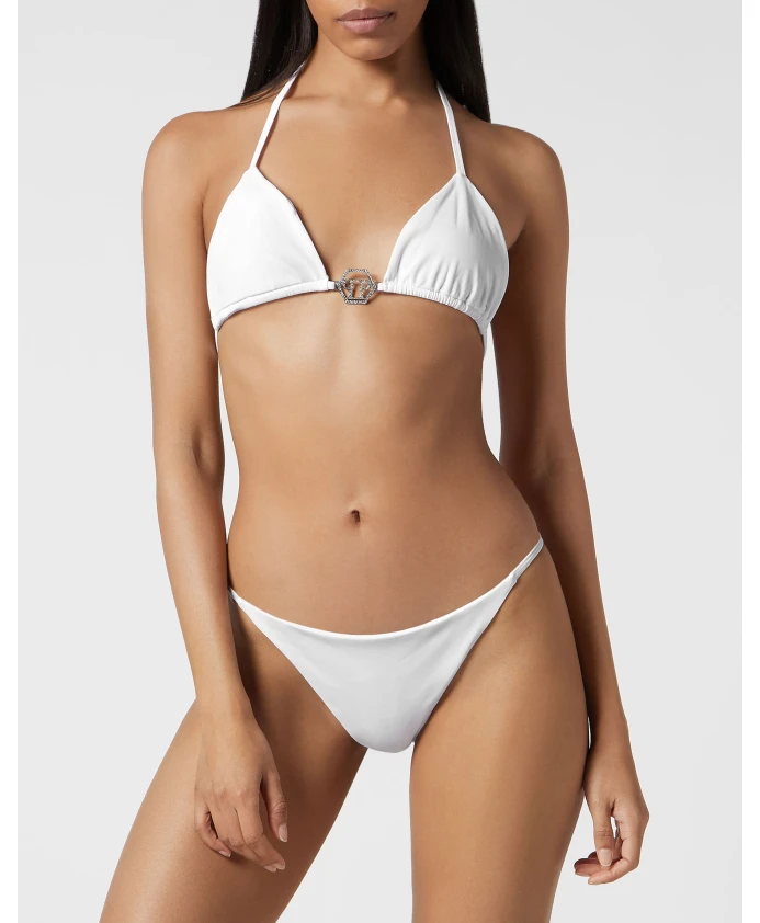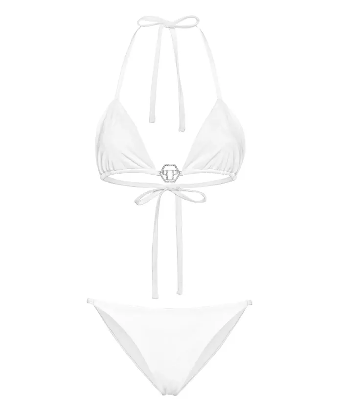 Philipp Plein представляет бикини - купальник из лайкры с эффектным шестиугольным декоративным элементом из полипропилена на вырезе. Созданный для пляжа и бассейна, он сочетает в себе треугольный топ с завязками спереди и плавки с боковыми завязками для регулируемой посадки. Ключевые особенности: Белый | Лайкра | Эластичная ткань | Регулируемые завязки | Плавки с завязками спереди | Двухслойная стежка | Треугольный топ | Шестиугольный декоративный элемент из полипропилена на вырезе | Однотонный | Состав и уход: 80% полиамид | 20% эластан